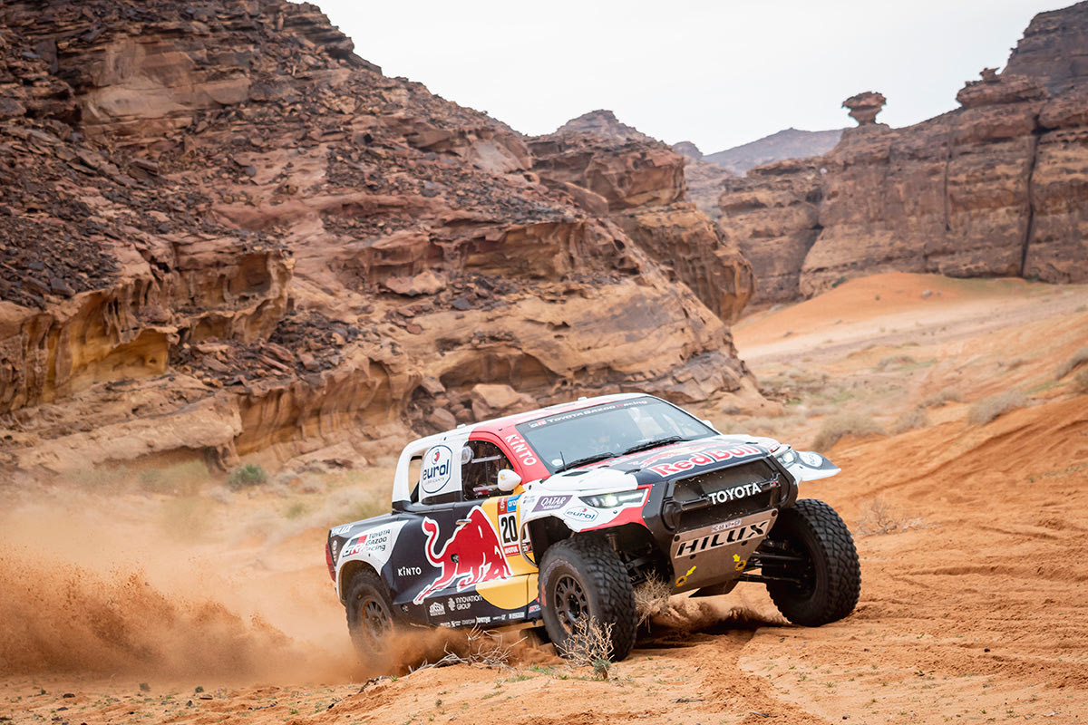Ο οδηγός από το Κατάρ εκμεταλλεύτηκε για αυτό και τα μεγάλα προβλήματα του μέχρι χθες πρωτοπόρου του αγώνα, Κάρλος Σάινθ. Ο Ισπανός ξεκίνησε την Ειδική με προβάδισμα 2:12 λεπτών από τον Αλ-Ατίγια, αλλά στο 213ο χιλιόμετρο το Audi RS Q e-tron E2 ακινητοποιήθηκε με προβλήματα που προκλήθηκαν από ένα κλατάρισμα του πίσω αριστερού τροχού.