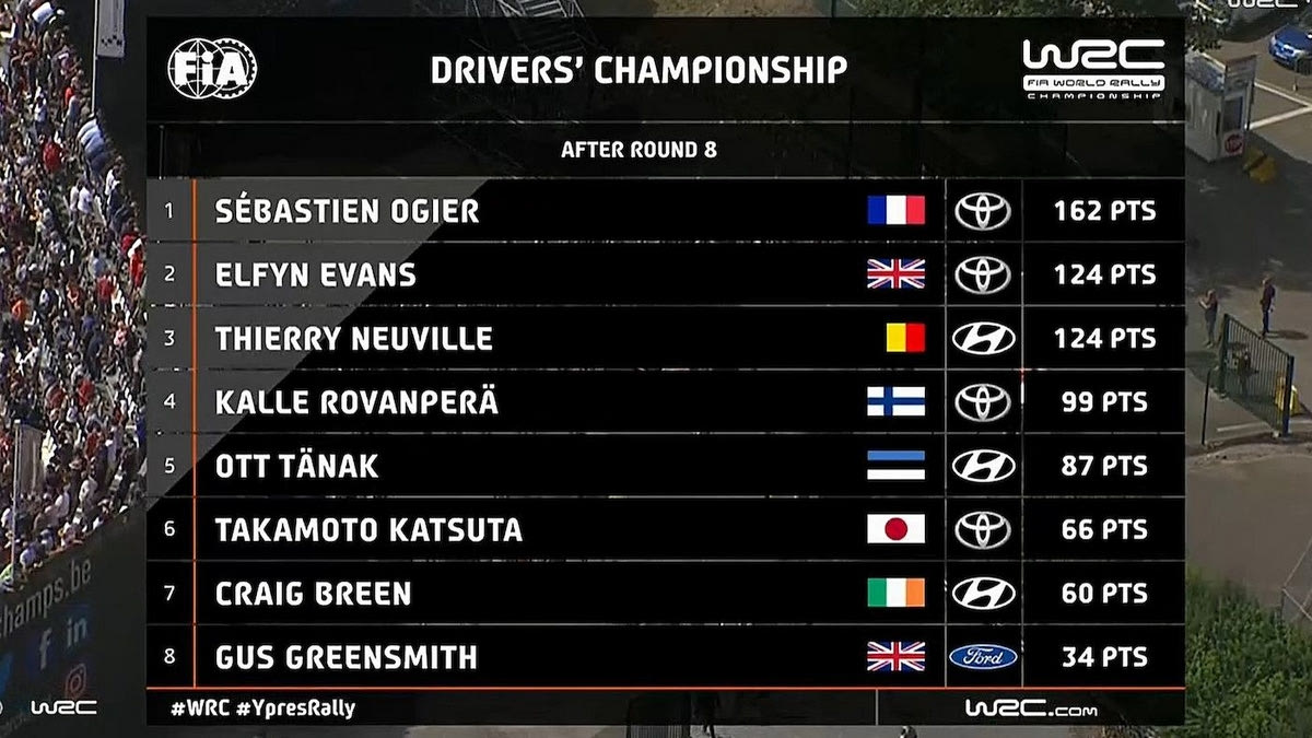 Τους πέντε βαθμούς της τελευταίας Powerstage στην πίστα του Σπα-Φρανκορσάμπ κέρδισε ο Τάνακ, με τον πρώτο χρόνο, ενώ ο Σεμπαστιάν Οζιέ πήρε 4 με τον δεύτερο, και ακολούθησαν οι Νεβίλ, Ροβάνπερα και Έβανς με 3-2-1 βαθμούς αντίστοιχα.