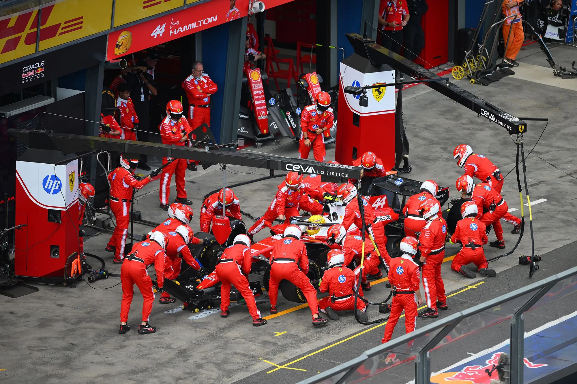 Η εκκίνηση ήταν γεμάτη ένταση, με τον Σαρλ Λεκλέρ να εκτινάσσεται από την 4η θέση και να κλέβει προσωρινά την πρωτοπορία από τον Τζορτζ Ράσελ, με τους δύο οδηγούς να μονομαχούν και να εναλλάσσονται στην κορυφή στους πρώτους γύρους. Η ροή του αγώνα, μετά τον 12ο γύρο, επηρεάστηκε από δύο φάσεις εικονικού αυτοκινήτου ασφαλείας (VSC). Η πρώτη προκλήθηκε από την εγκατάλειψη του Ιζάκ Χατζάρ με Red Bull. Σε εκείνο το σημείο, τα δύο μονοθέσια της Mercedes μπήκαν στα πιτ για αλλαγή ελαστικών, ενώ οι οδηγοί της Ferrari επέλεξαν να παραμείνουν στην πίστα. Μία δεύτερη περίοδος VSC ακολούθησε λόγω της αποχώρησης του Βάλτερι Μπότας με Cadillac, με τον Σαρλ Λεκλέρ και τον Λιούις Χάμιλτον, να συνεχίζουν επίσης χωρίς να σταματήσουν. Σε εκείνο το σημείο, ακόμη κι αν το ήθελαν, δεν μπορούσαν να μπουν στα πιτ, καθώς το pit lane παρέμεινε κλειστό όσο οι άνθρωποι ασφαλείας έσπρωχναν το μονοθέσιο του Φινλανδού οδηγού.