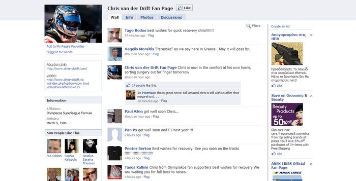 Η προσωπική σελίδα του Νεοζηλανδού (έχει πάρει την ολλανδική υπηκοότητα) στο facebook έχει κατακλυστεί από δεκάδες μηνύματα συμπαράστασης.