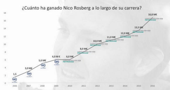 Τις διαπραγματεύσεις με την ηγεσία της Mercedes AMG Petronasείχε αναλάβει ο παλιός Αυστριακός πιλότος, Gerhard Berger ο οποίος στο τέλος κατάφερε να πετύχει μια σημαντική αύξηση για λογαριασμό του Rosberg από τα 18 στα 25 εκατομμύρια ευρώ ετησίως.