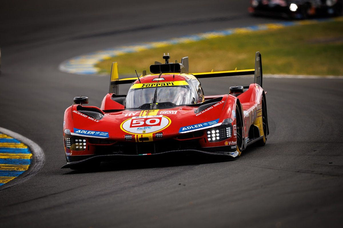 H Ferrari πήρε το προβάδισμα από νωρίς με τα τρία αυτοκίνητα της AF Corse – συμπεριλαμβανομένης και της πελατειακής #83. Η εργοστασιακή #50 και η #83 έμειναν στην πίστα όταν άρχισε να βρέχει το απόγευμα του Σαββάτου, καθώς οι οδηγοί των περισσότερων άλλων αυτοκινήτων της κορυφαίας κατηγορίας LMDh μπήκαν στην πίστα για βρόχινα ελαστικά.