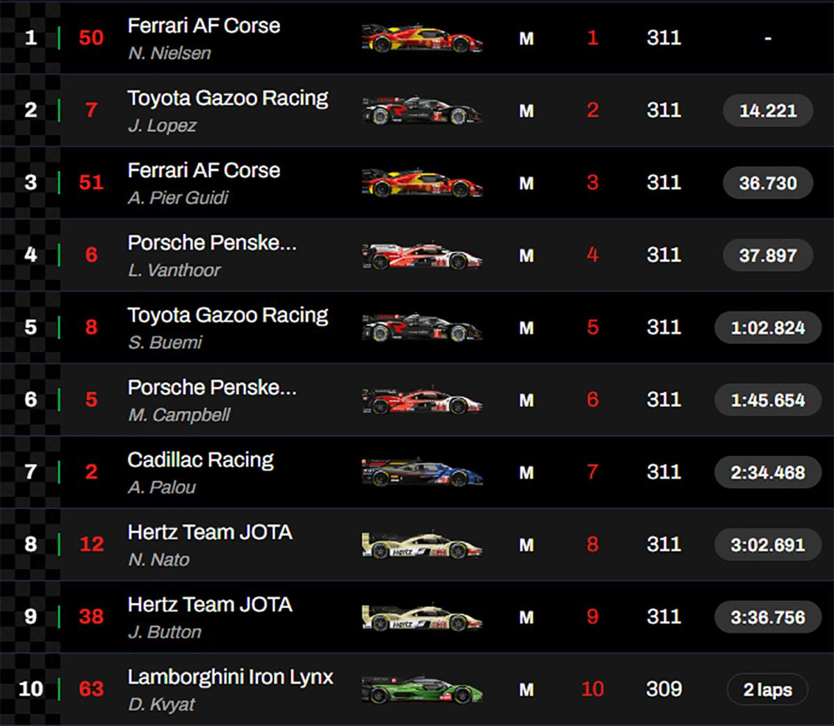 24 Ώρες ΛεΜαν 2024, Αποτελέσματα πρώτης δεκάδας LEMANS 24H