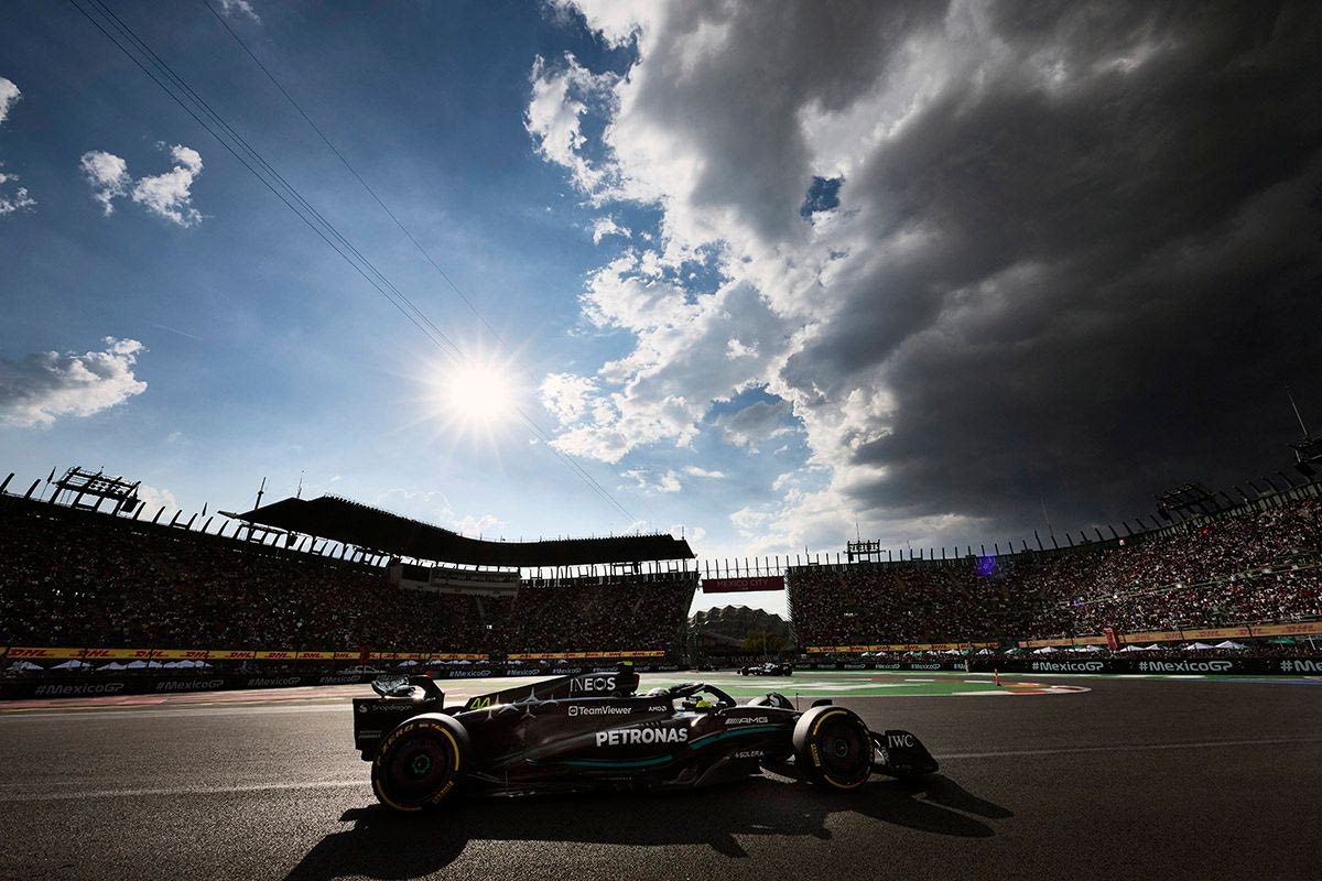 Ο Λιούις Χάμιλτον με τη Mercedes W14 στο περσινό GP Μεξικού, στο σημείο του Σταδίου Foro Sol Steve Etherington / Mercedes-Benz AG