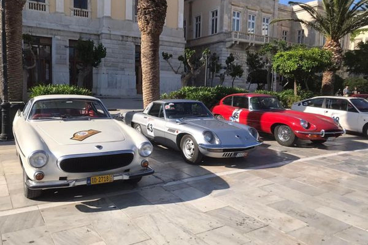 Τα πρώτα πληρώματα άρχισαν να καταφτάνουν από το πρωί της Παρασκευής στο Λιμάνι της Ερμούπολης και μέχρι αργά το απόγευμα η πλατεία Μιαούλη, μπροστά από το Δημαρχείο Ερμούπολης, είχε γεμίσει με ιστορικά αυτοκίνητα του ’60, του ’70 και του ΄80. Τις εντυπώσεις έκλεψε το μοναδικό κόκκινο ηλεκτροκίνητο E8000 που κατασκευζόταν την δεκαετία του ’70 στη Σύρο από την Enfield Neorion.