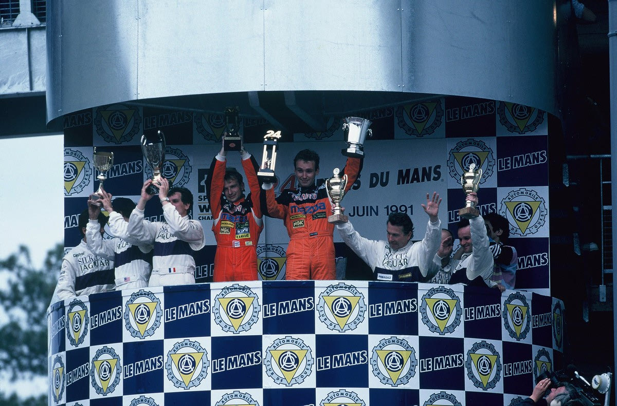 Εξοπλισμένο με περιστροφικό κινητήρα Βάνκελ με 4 ρότορες, το Mazda 787B κέρδισε στον αγώνα αντοχής 24 Hours Le Mans στις 23 Ιουνίου 1991. Το πλήρωμα των Τζόνι Χέρμπερτ, Μπερνάρ Γκασό και Φόλκερ Βάιντλερ εκμεταλλεύτηκε την αξιοπιστία του Mazda και τα μηχανικά προβλήματα που αντιμετώπισαν οι αντίπαλες ομάδες και πήρε τη νίκη με διαφορά δύο γύρων από τους δεύτερους.