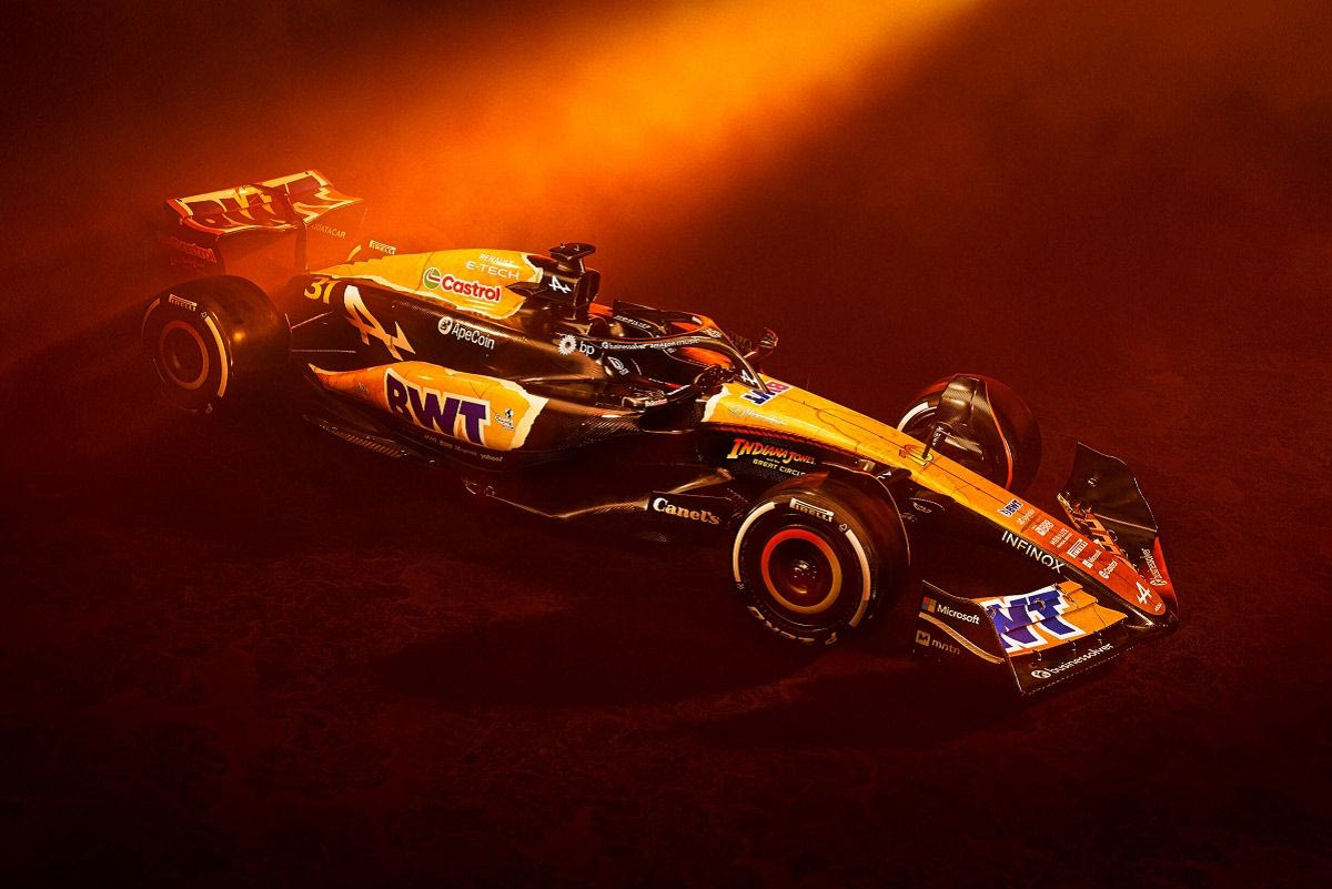 Ο πορτοκαλί χρωματισμός της Alpine A524, που θα επεκταθεί και στις αγωνιστικές φόρμες των Πιέρ Γκασλί και Εστεμπάν Οκόν, περιλαμβάνει έναν αρχαίο χάρτη με κόκκινες διαδρομές βάσει της εμβληματικής ταινίας με τον Χάρισον Φορντ.