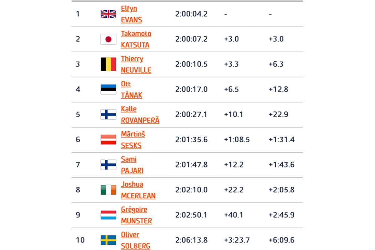 Ο Ουαλός ξεκίνησε τη σημερινή μέρα με ισχνό προβάδισμα 0,6’’ από τον Κατσούτα. Ήταν και οι δύο ταχύτατοι στις παγωμένες πρωινές ΕΔ, αλλά το απόγευμα η ταχύτητα του Έβανς κι ένα μικρό λάθος του Ιάπωνα αύξησαν το προβάδισμα του πρώτου στα 8,6’’. Τότε ήρθαν τα δύο λάθη του Έλφυν, και οι διαφορές στις τέσσερις πρώτες θέσεις μειώθηκαν ξανά.