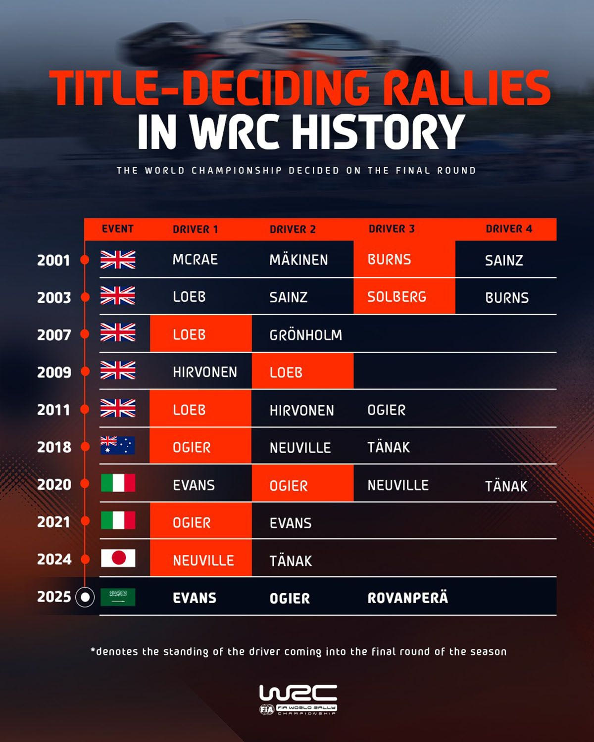 Οι μονομαχίες του τίτλου του WRC στον τελευταίο αγώνα (από το 2000)
