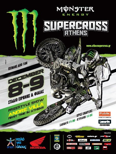 Αυτό το σαββατοκύριακο (8-9 Δεκεμβρίου) το Monster Energy Athens Supercross πραγματοποιείται στο Στάδιο Ειρήνης και Φιλίας. Μια μεγάλη διοργάνωση που έγινε συνήθεια εδώ και δεκαεννέα ολόκληρα χρόνια.
