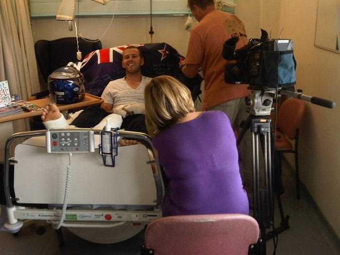 Ο Νεοζηλανδός πιλότος μετά την πρώτη επέμβαση που του έγινε στον αστράγαλο αναρρώνει στο σπίτι του στο Μίλτον Κέινς.