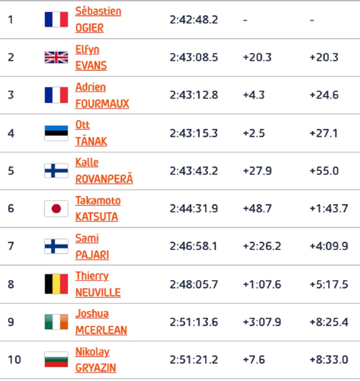 Στο 1-2 της Toyota ο Γάλλος προηγείται με 20,3 δευτερόλεπτα του Έλφυν Έβανς με το έτερο GR Yaris Rally1. Δεν ήταν εύκολο για τον Οζιέ, καθώς με τις υψηλότερες θερμοκρασίες από την 10η θέση που εκκινούσε έπρεπε να αντιμετωπίζει τη λάσπη και τις πέτρες που άφηναν πίσω τους όσοι εκκινούσαν νωρίτερά του.