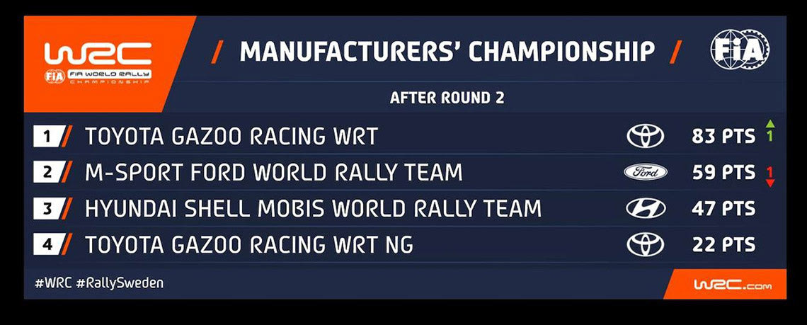 Το Παγκόσμιο Πρωτάθλημα Ράλι θα κάνει τώρα διακοπή σχεδόν δύο μηνών, στην οποία οι ομάδες θα έχουν την ευκαιρία να εξελίξουν την αξιοπιστία των υβριδικών τους συστημάτων, πριν επιστρέψουν για το Ράλι Κροατίας στις 21-24 Απριλίου.