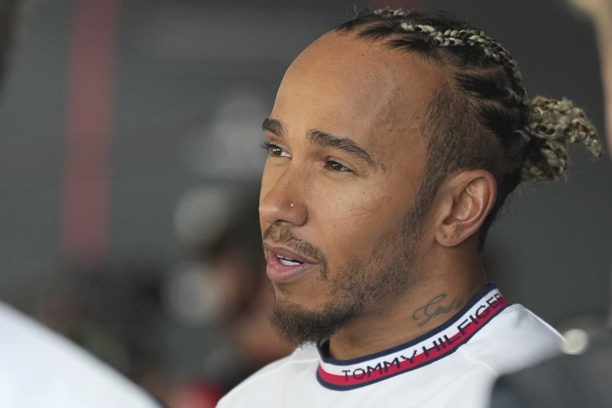 Mercedes driver Lewis Hamilton of Britain reacts after the Japanese Formula One Grand Prix at the Suzuka Circuit, Suzuka, central Japan, Sunday, Sept. 24, 2023. Hamilton placed fifth. (AP Photo/Toru Hanai)