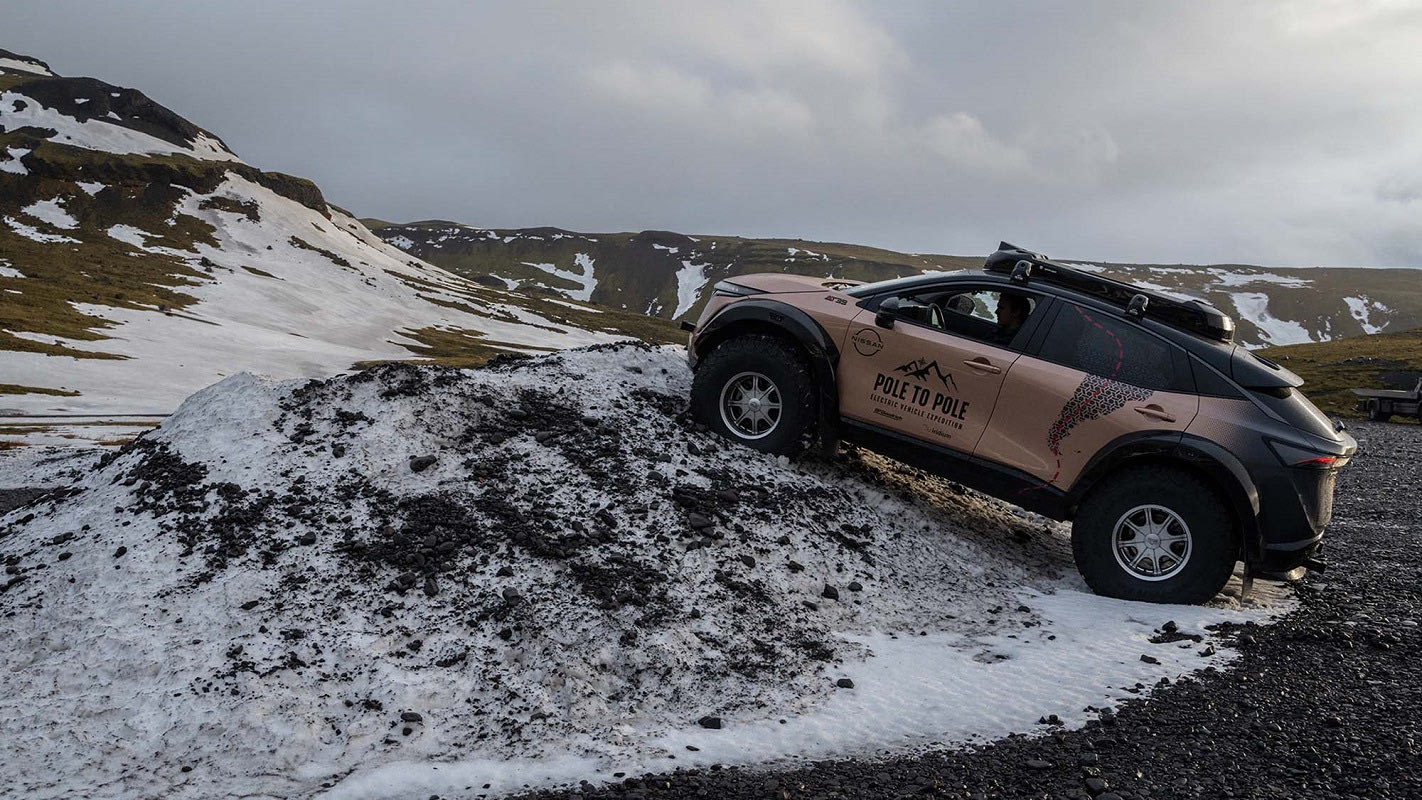 Η “ετοιμοπόλεμη” έκδοση του νέου ηλεκτρικού SUV Ariya, που θα πραγματοποιήσει ένα ταξίδι 27.000 χιλιομέτρων από τον μαγνητικό Βόρειο Πόλο στον Νότιο Πόλο, παρουσιάστηκε επίσημα από την ομάδα αποστολής Pole to Pole και τη Nissan, στο Ρέικιαβικ της Ισλανδίας, σε ένα σκηνικό που θυμίζει Αρκτική.
