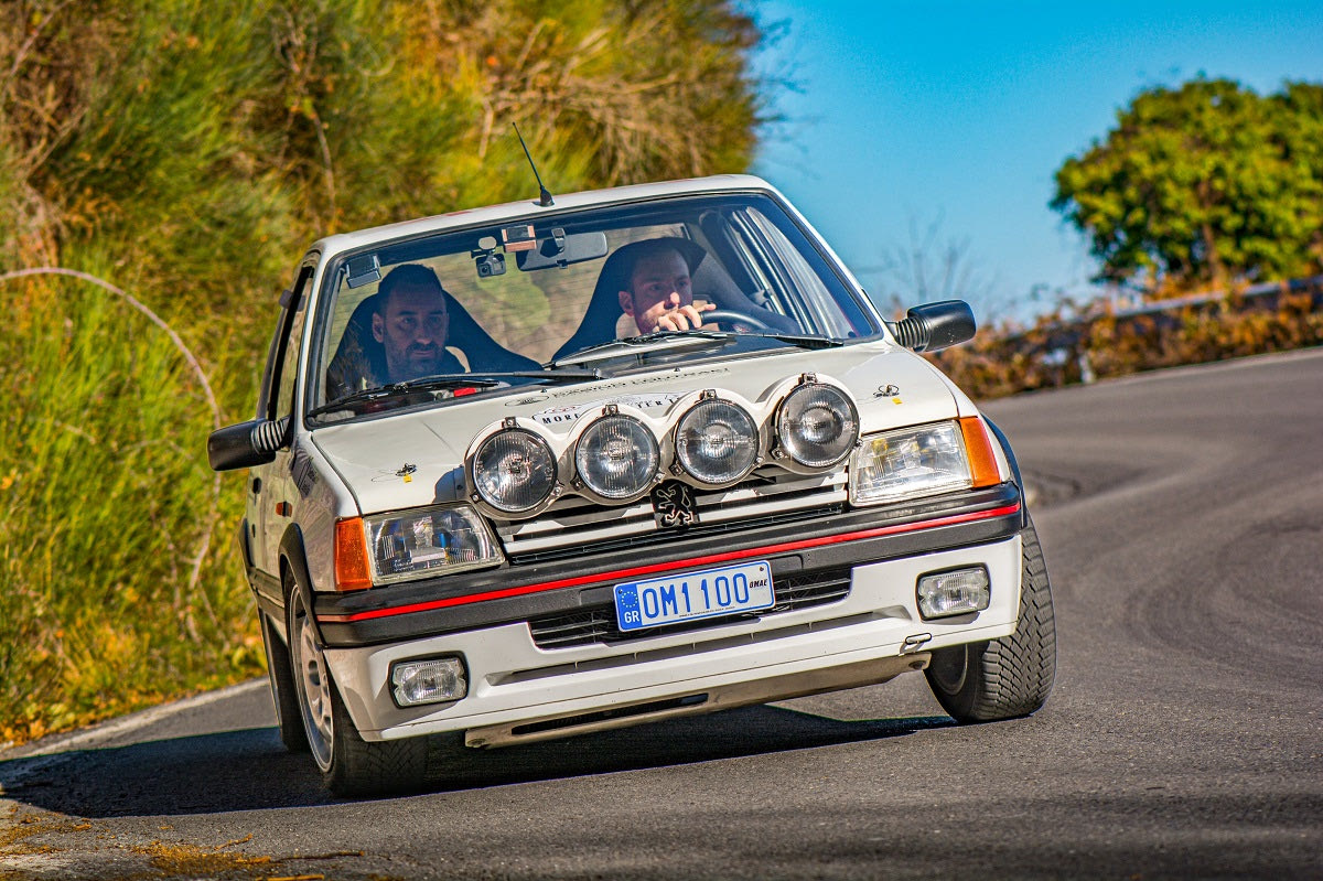 Λάτρης των γαλλικών μοντέλων, δεν επέλεξε τυχαία το συγκεκριμένο 205. Είναι γνήσιο, group N, μοντέλο του 1986 και έχει ανακατασκευαστεί επιμελώς. Το φροντίζει με αγάπη ο Μάκης Θεργιάκης, μαζί με τους Θοδωρή Περπινιά και Σταμάτη Χαλιδιά στα ηλεκτρολογικά. Από αυτό έχει ονομάσει και την ομάδα του, την White Lion.