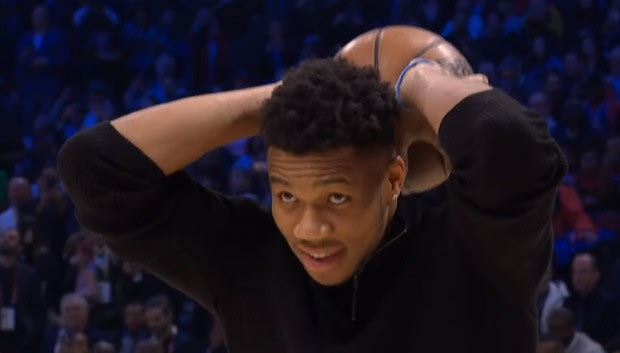 Ο περιφερειακός των Μπακς ζήτησε τη βοήθεια του Γιάννη Αντετοκούνμπο, δεν τα κατάφερε στις δύο πρώτες προσπάθειές του, στην τρίτη όμως πέρασε πάνω από τον Greek Freak, χτύπησε τη μπάλα στο ταμπλό και την κάρφωσε εντυπωσιακά με το κοινό να καταλαβαίνει στο replay τι πραγματικά συνέβη.