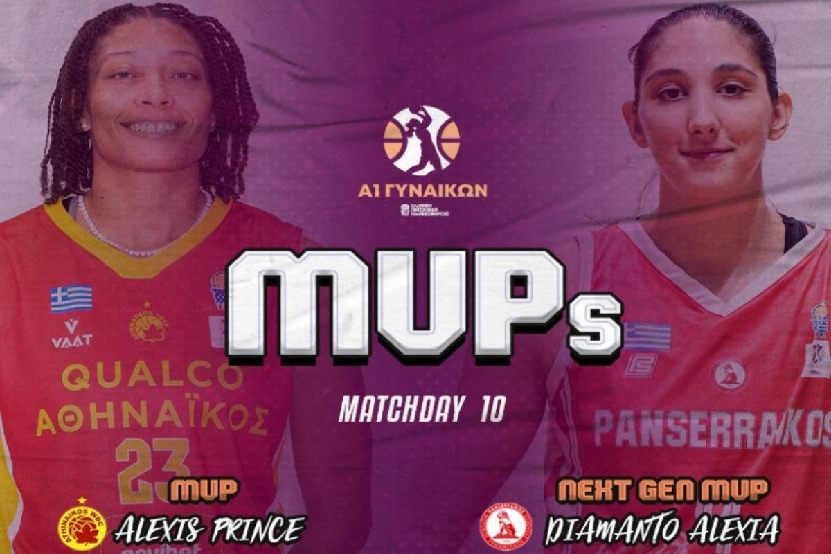 Η Αλέξις Πρινς ξεχώρισε στο ντέρμπι Αθηναϊκός Qualco – Ολυμπιακός και αναδείχθηκε MVP της 10ης αγωνιστικής της Α1 Γυναικών, ενώ η Διαμάντω Αλεξιά του Πανσερραϊκού κέρδισε τη διάκριση MVP Next Gen με double-double στην επιβλητική νίκη της ομάδας της.