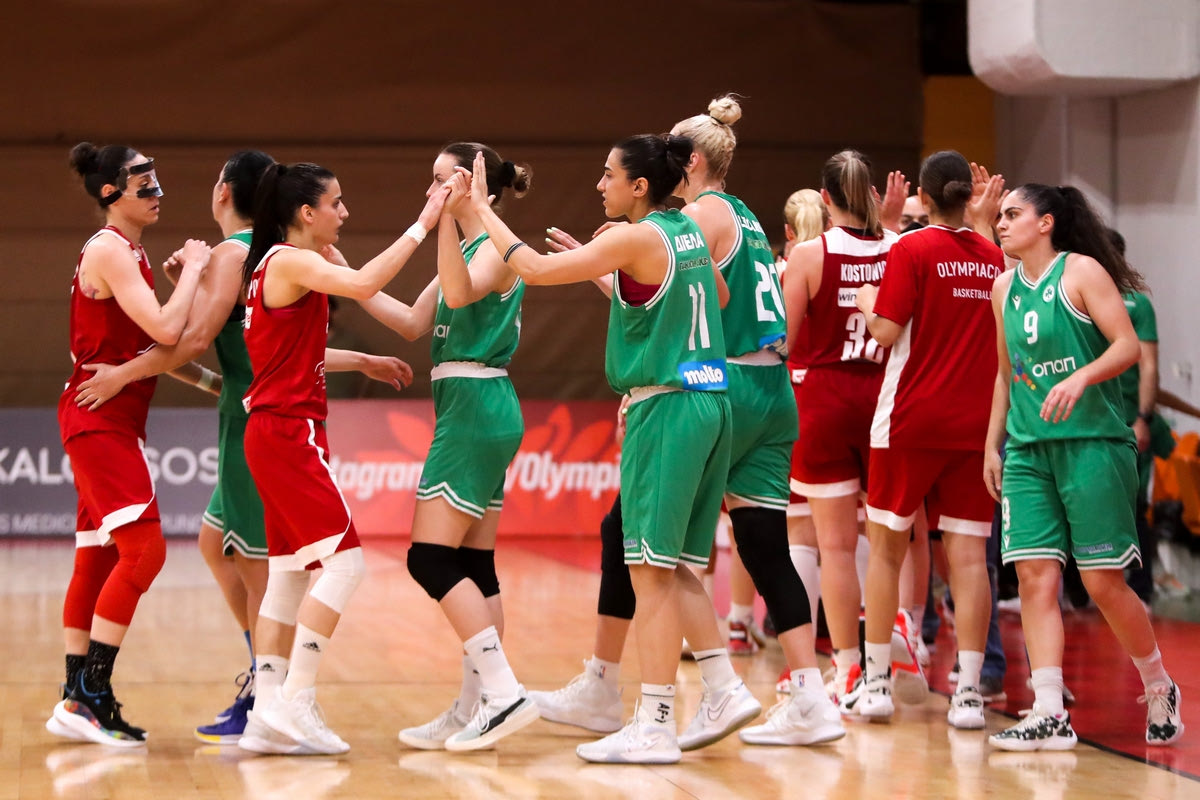 Οι ομάδες του Ολυμπιακού και του Παναθηναϊκού μετά τον πρώτο τελικό της Α1 γυναικών Eurokinissi