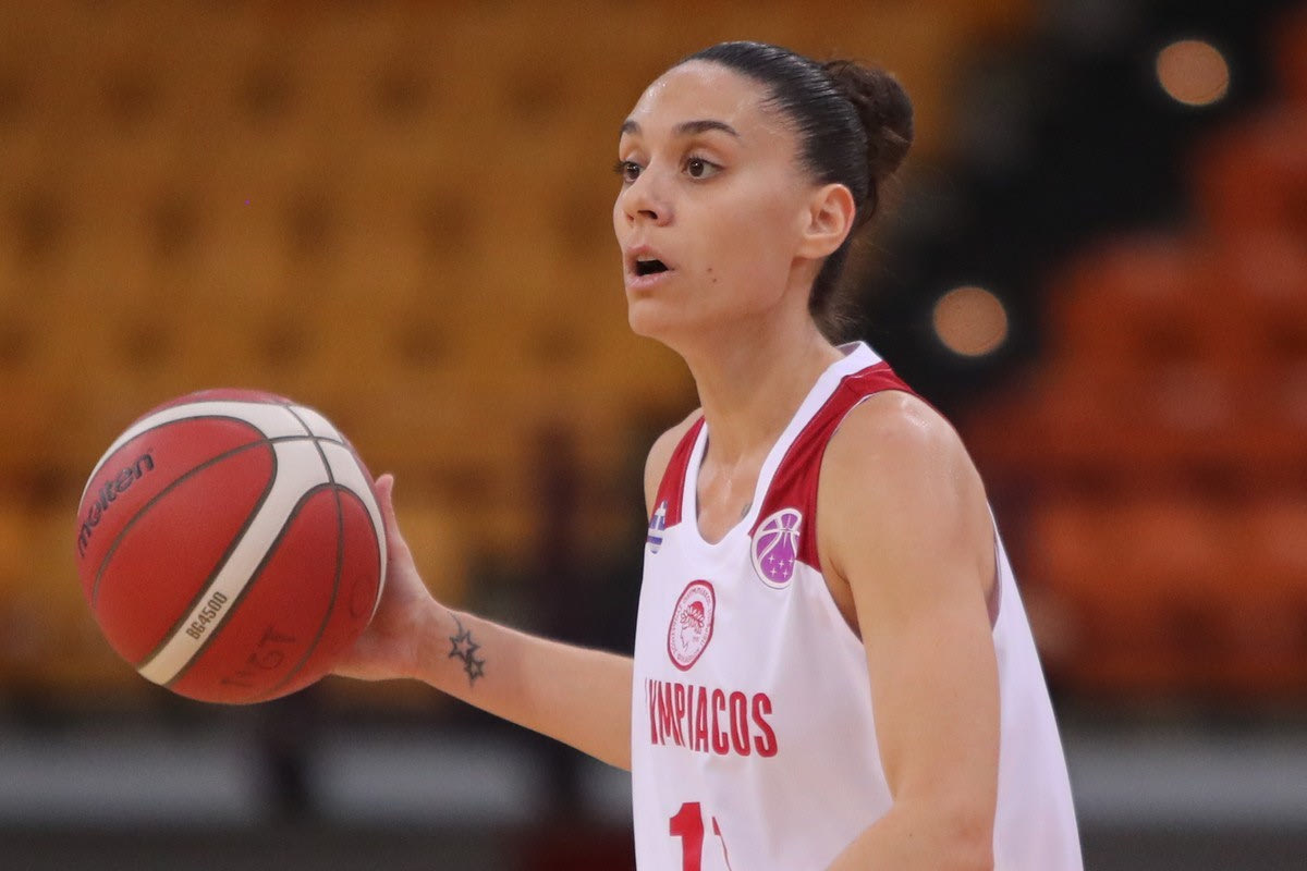 Η Νικολοπούλου με την φανέλα του Ολυμπιακού