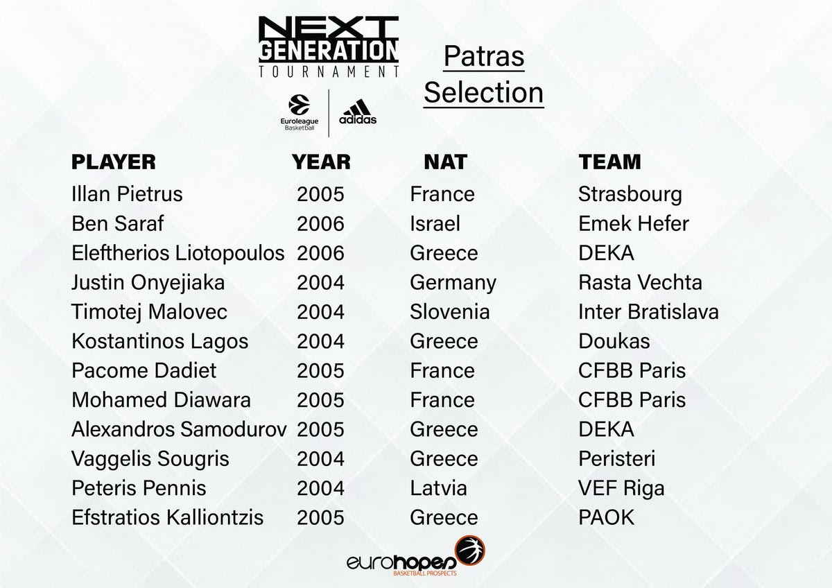 Πέντε Έλληνες θα έχει η δωδεκάδα της Next Generation Patras του Βασίλη Σπανούλη, για το Adidas Next Generation Tournament της Πάτρας.