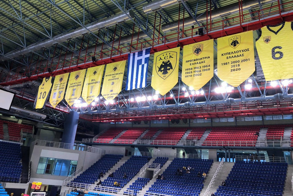 Η ΑΕΚ μπήκε στο νέο της σπίτι στα Άνω Λιόσια με πολλές αφίσες στον δρόμο προς αυτό να απεικονίζουν θρυλικές μορφές της μπασκετικής της ιστορίας και να οδηγούν τον κόσμο στο νέο "σπίτι" της Ένωσης.