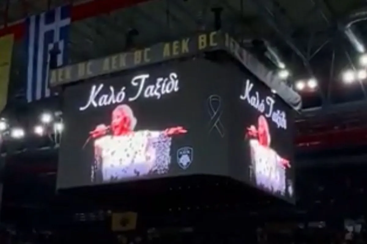 Έτσι επέλεξαν οι γηπεδούχοι να δώσουν έναν φόρο τιμής και να πουν το “αντίο” σε αυτήν τη θρυλική μορφή του ελληνικού τραγουδιού που έφυγε από τη ζωή.