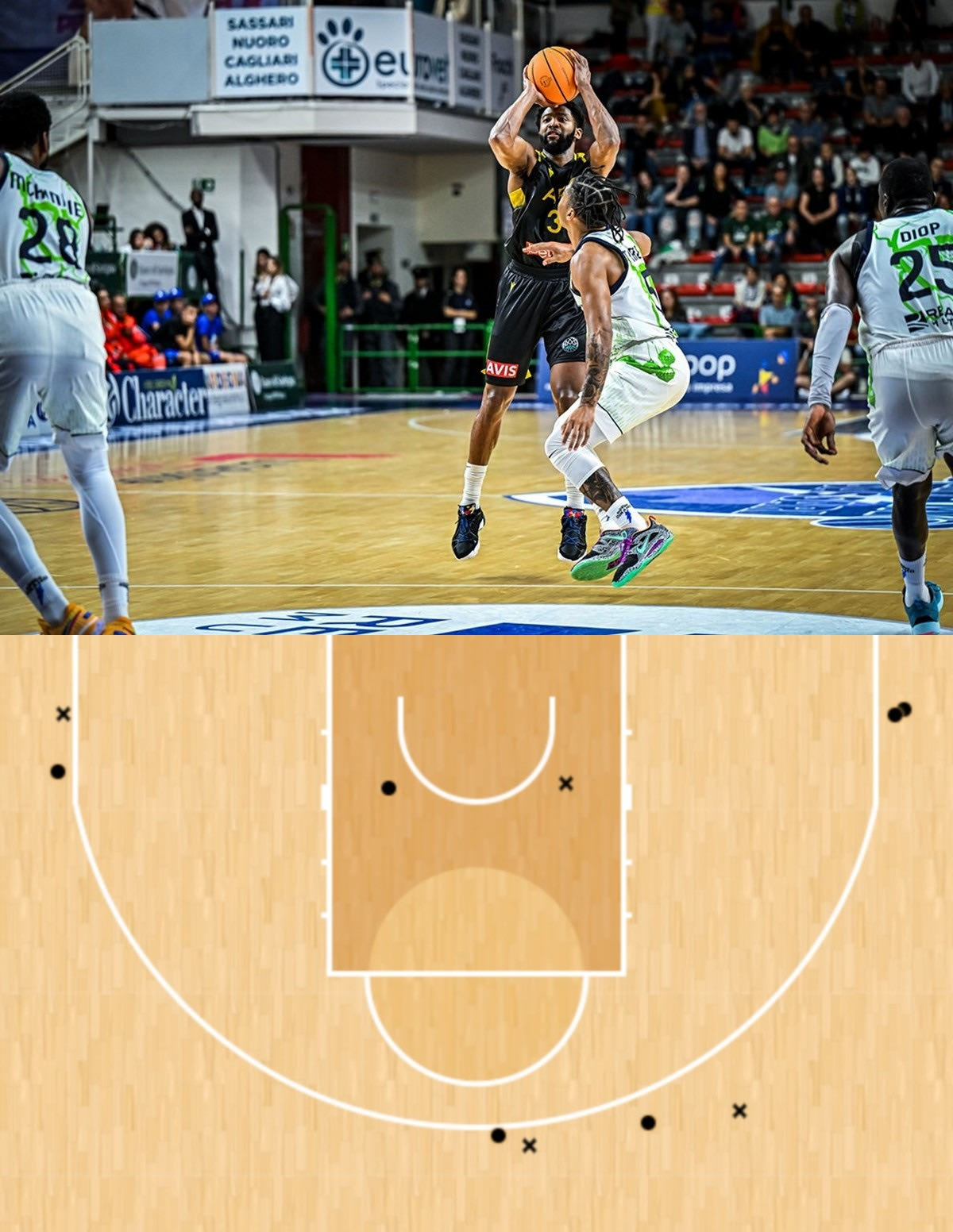 Ο Αμερικανός μπήκε αποφασισμένος στην 4η περίοδο. Το σουτ που τον βοήθησε να βρει ρυθμό ήρθε σε μία χαρακτηριστική του κίνηση, όπου βγήκε από σκριν και εκτέλεσε για τρεις. Ήταν αυτό που χρειαζόταν. Έκτοτε ο Αμερικανός βρήκε ρυθμό, κάτι στο οποίο βοήθησε και το πώς απασχολούσε την αντίπαλη άμυνα ο Τίλμαν στο Pick and Roll. Γιατί όμως ο Αμερικανός βοηθήθηκε από αυτό; Επειδή η Σάσαρι είχε κακές αμυντικές περιστροφές στην προσπάθειά της να σταματήσει τον Τίλμαν, η ΑΕΚ Betsson κυκλοφόρησε καλά την μπάλα και έβγαλε σουτ στον Ραντλ. Ιδού το Shot Chart του.
