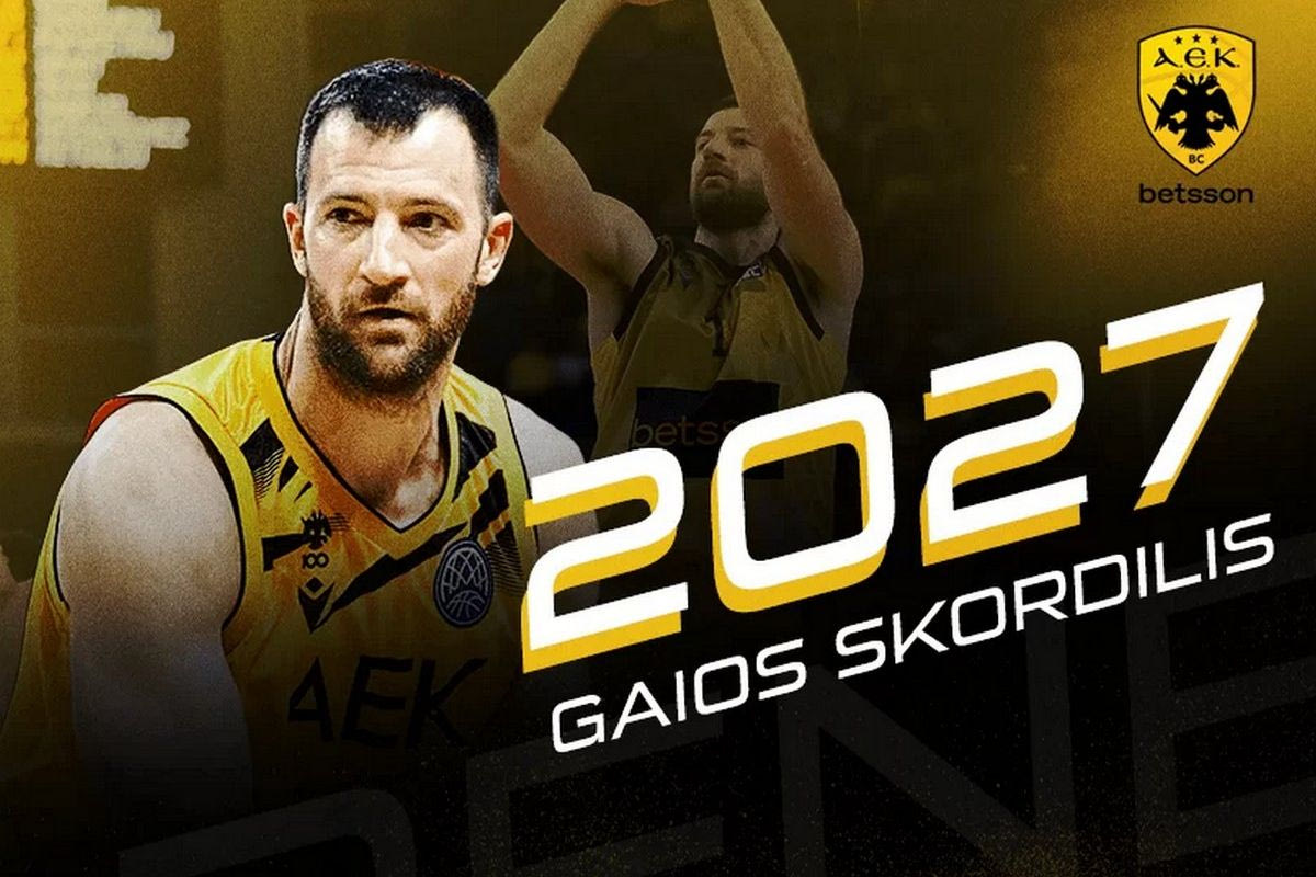 “Η ΑΕΚ Βetsson BC βρίσκεται στην ευχάριστη θέση ν’ ανακοινώσει, ότι ο Γάιος Σκορδίλης (37 χρ.,2μ.08) παραμένει στη «Βασίλισσα».