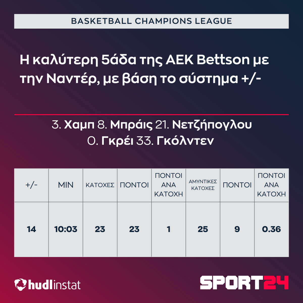 ΑΕΚ Betsson: Το +14 της βασικής πεντάδας, ο καυτός Χέιλ και η κίνηση του Χαμπ που έδειξε στην Ναντέρ ότι η “Ένωση” δεν αστειεύεται
