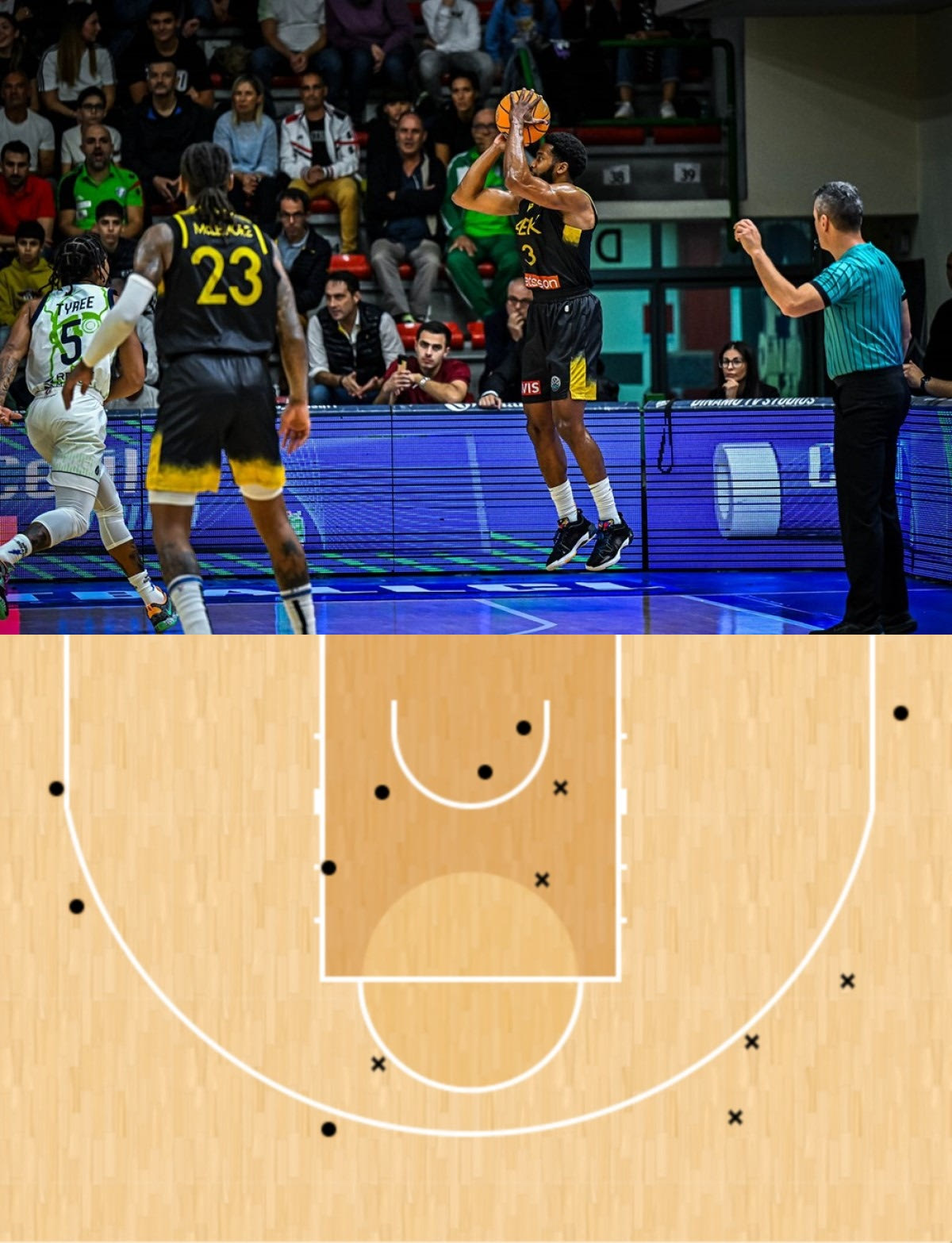 Με κύκλο τα εύστοχα σουτ, με “x” τα άστοχα