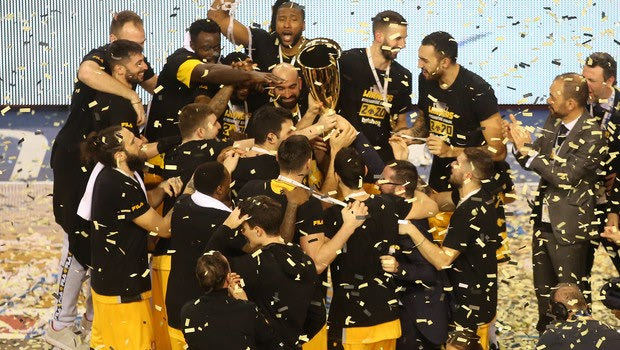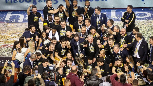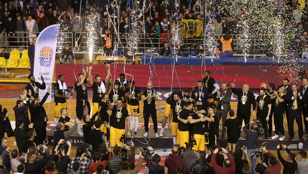 Αμέσως μετά, ακολούθησε η απονομή των μεταλλιων και φυσικά του τροπαίου, το οποίο παρέλαβε ο Γιόνας Ματσιούλις, με τον Δημήτρη Μαυροειδή, που όμως κάλεσαν και τον MVP του τελικού, Νίκο Ζήση. Οι τρεις τους σήκωσαν μαζί στον “ουρανό” του γηπέδου τον τίτλο, πριν αυτό περάσει από όλα τα κιτρινόμαυρα χέρια, με αποκορύφωμα αυτά του μεγαλομετόχου της ομάδας, Μάκη Αγγελόπουλου.