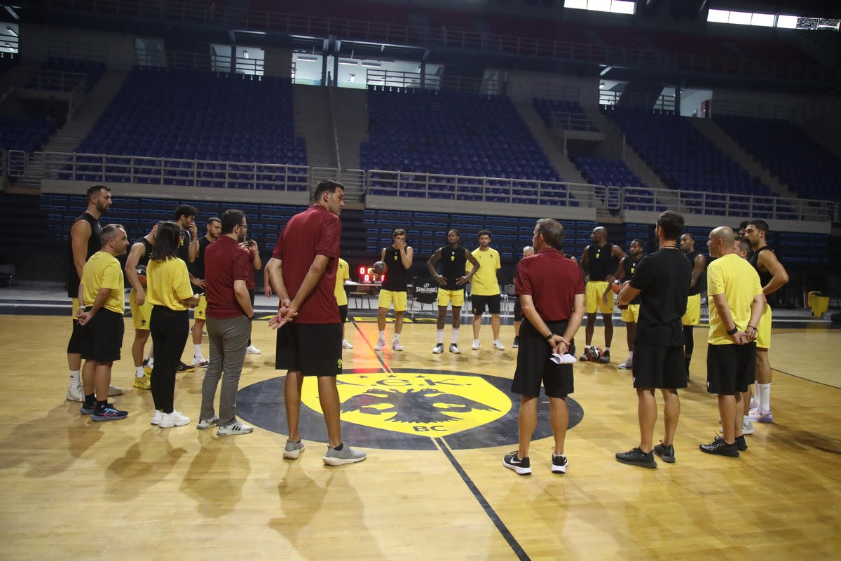 Την πρώτη της προπόνηση ενόψει της σεζόν 2023/24 πραγματοποίησε η ΑΕΚ στο κλειστό των Άνω Λιοσίων υπό τις οδηγίες του Ζουάν Πλάθα.
