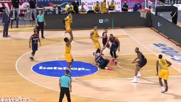 Σε μία προσωπική φάση – σήμα κατατεθέν, επιτέθηκε στο ένας με έναν στον Γιάρομιρ Μπόχατσικ και με υπέροχη ραχιαία ντρίμπλα ξεφορτώθηκε τον αντίπαλό του, σπάζοντας τους αστραγάλους του. Ο περιφερειακός της Στρασμπούρ έπεσε στο παρκέ και το μόνο που μπόρεσε να κάνει ήταν να δει… από άλλη οπτική γωνία το καλάθι του ηγέτη της ΑΕΚ.