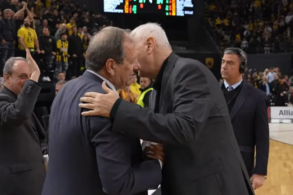 Μάλιστα, υπήρξαν στιγμιότυπα από την αποθεώση του κόσμου προς τους παίκτες και στον Ντράγκαν Σάκοτα, ενω το πλάνο που ξεχώρισε στο τέλος ήταν η αγκαλιά του Μάκη Αγγελόπουλου με τον προπονητή της Ένωσης.
