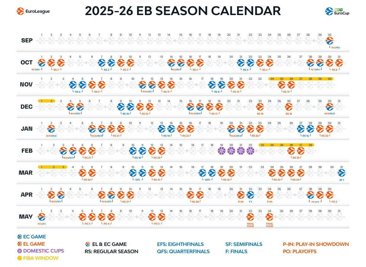 Αυτό είναι το καλεντάρι της EuroLeague 2025-26, τι ισχύει με τα παράθυρα της FIBA και τις διαβολοβδομάδες