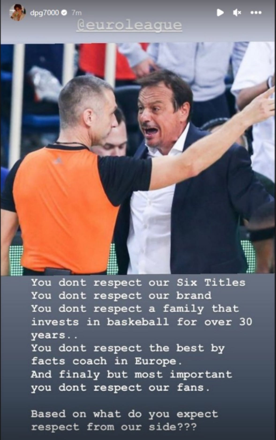 “Δεν σέβεστε τους έξι τίτλους μας. Δεν σέβεστε το brand μας. Δεν σέβεστε μια οικογένεια που επενδύει στο μπάσκετ για περισσότερα από τριάντα χρόνια.