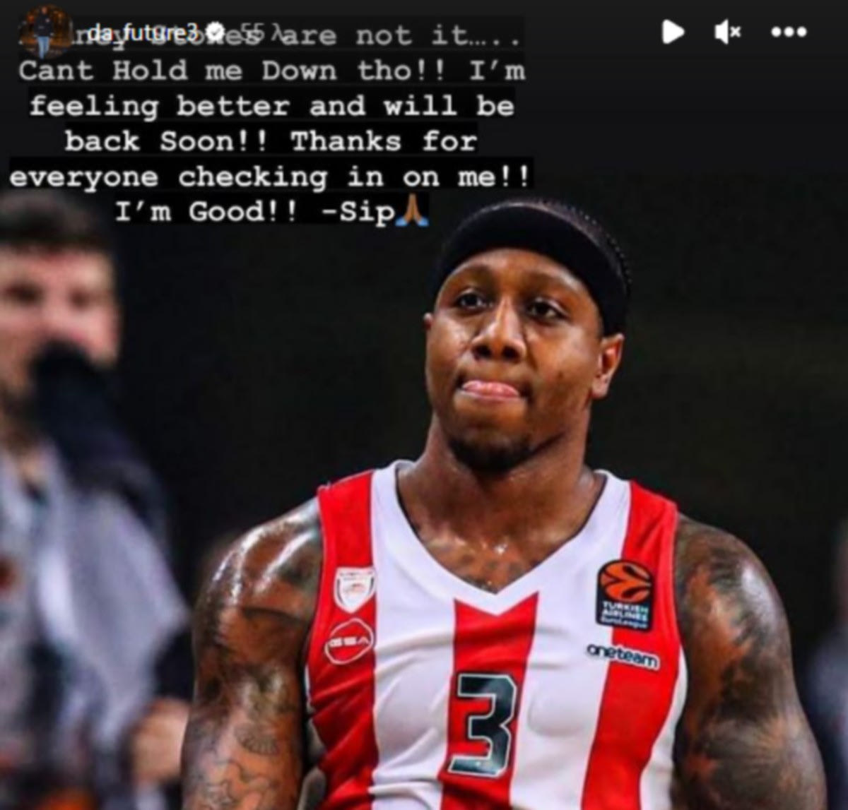 “Δεν μπορεί να με ρίξει. Αισθάνομαι καλύτερα και θα γυρίσω σύντομα. Σας ευχαριστώ που ενδιαφερθήκατε για εμένα, είμαι καλά” έγραψε ο Αμερικανός γκαρντ σε story στο Instagram το βράδυ της Παρασκευής (13/1).
