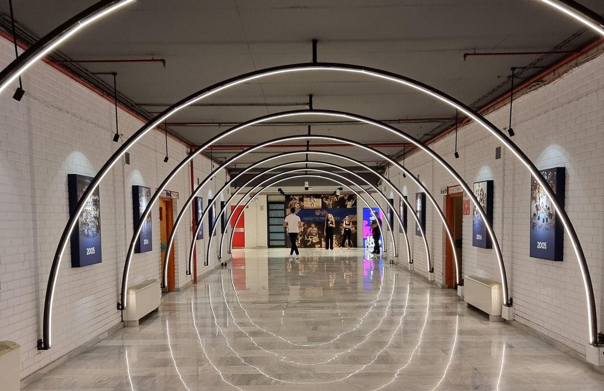 Αλλαγές και στους εσωτερικούς χώρους του ΣΕΦ, τα γαλανόλευκα αντικατέστησαν τα ερυθρόλευκα του Ολυμπιακού