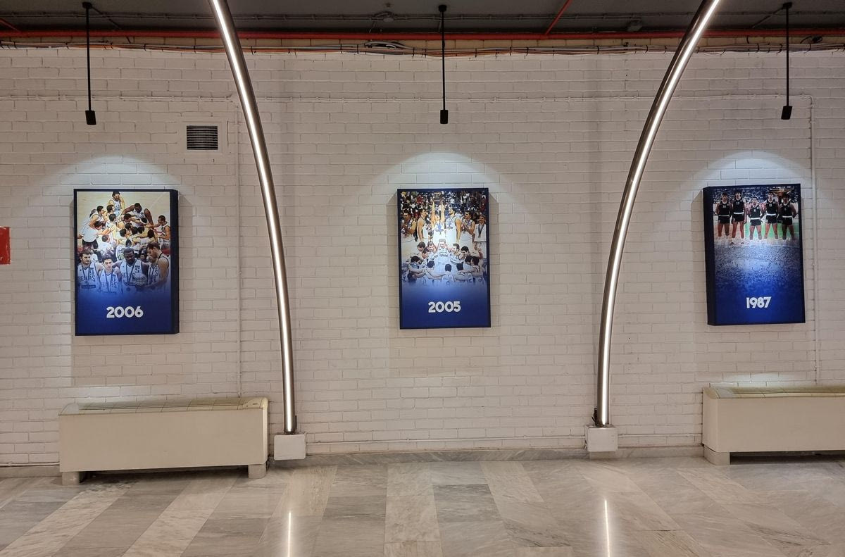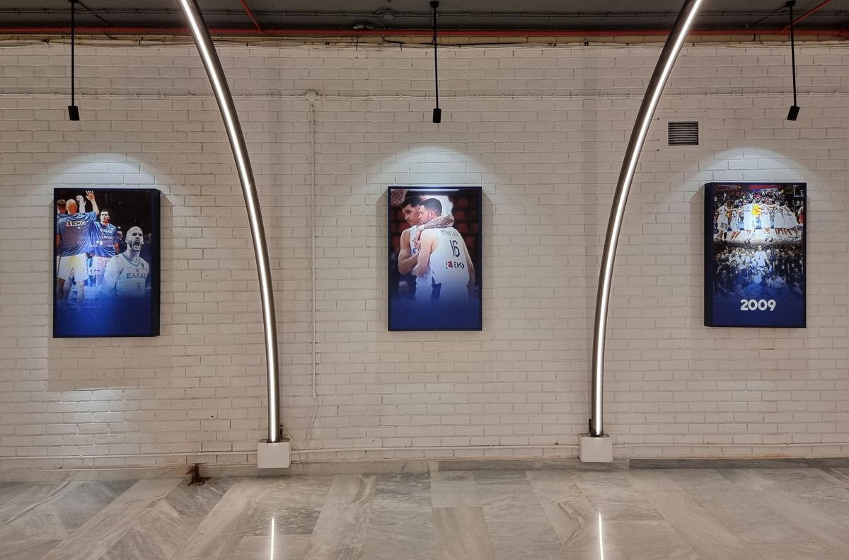Οι εικόνες με τις μορφές των Πειραιωτών αντικαταστάθηκαν από φωτογραφίες της Εθνική Ελλάδας από την κατάκτηση των δύο EuroBasket και από στιγμιότυπα πρόσφατων αναμετρήσεων.
