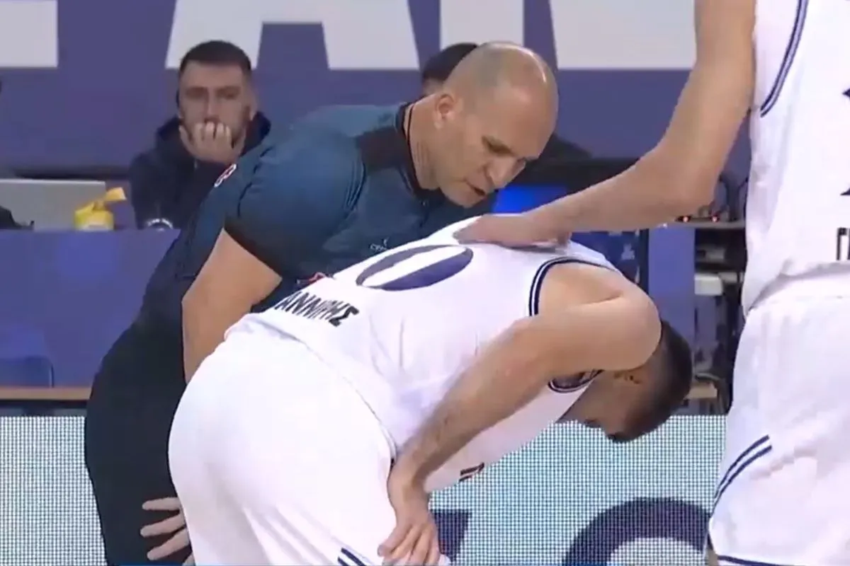 Στο πρώτο λεπτό της αναμέτρησης, ο Δημήτρης Μωραΐτης τραυματίστηκε και αποχώρησε κουτσαίνοντας από το παρκέ.