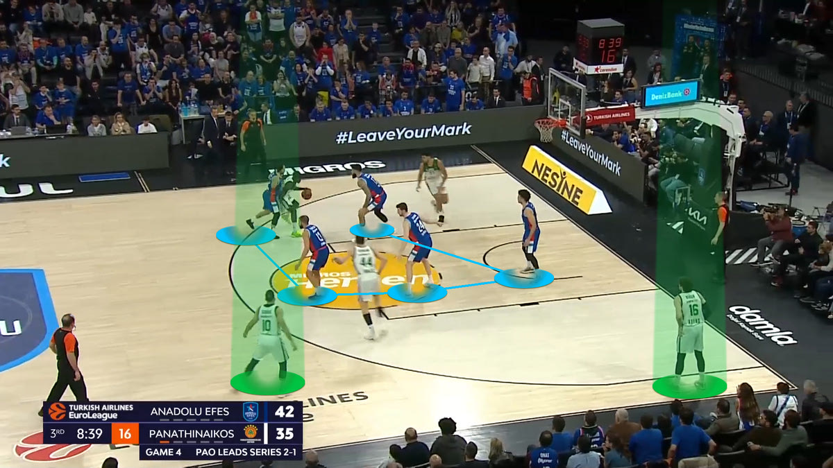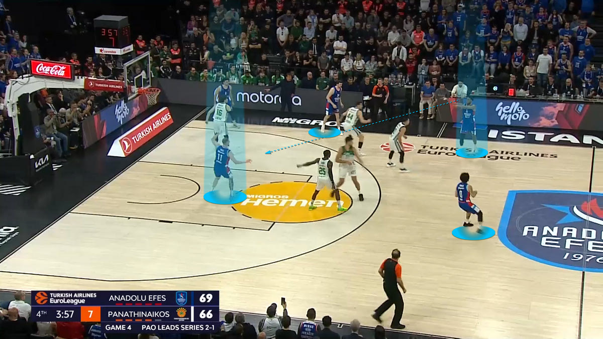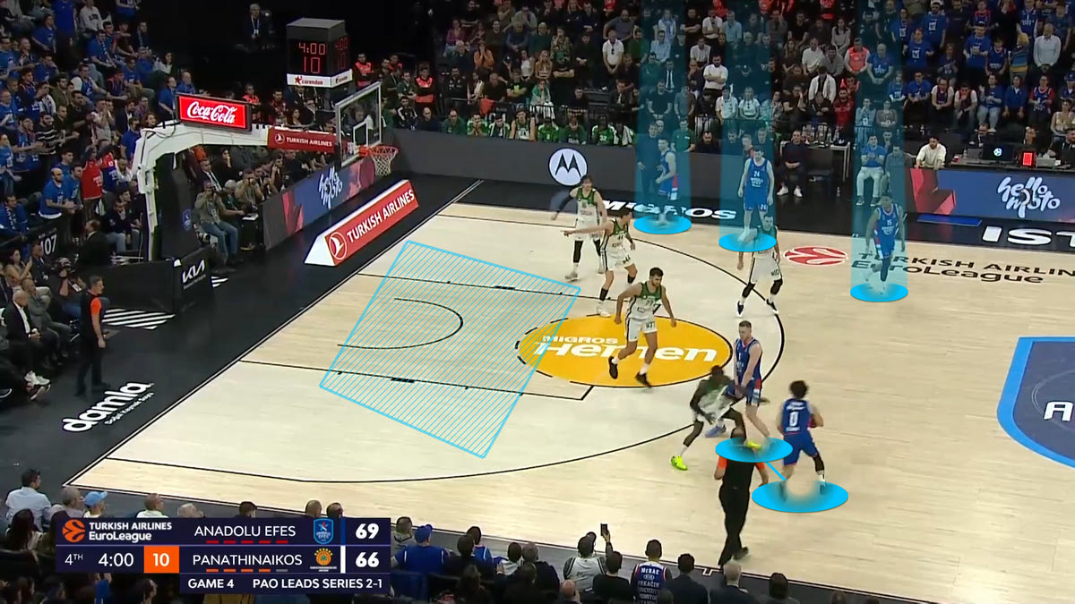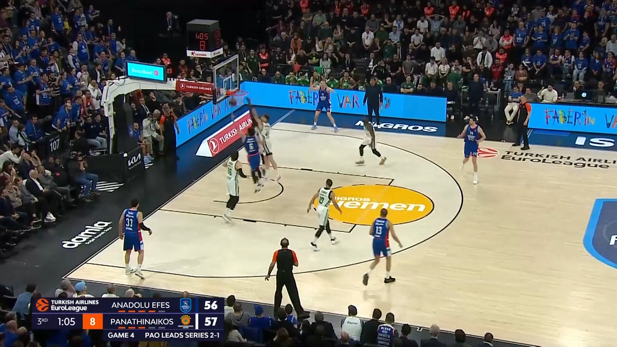 Η Εφές παίζει Hedge Out (ο ψηλός βγαίνει σε βοήθεια). Ο Γιούρτσεβεν ρολάρει στο καλάθι, δίνοντας επιλογή πάσας στον Ναν (που δεν πασάρει), ενώ ο Σλούκας ανεβαίνει στις 45 μοίρες.