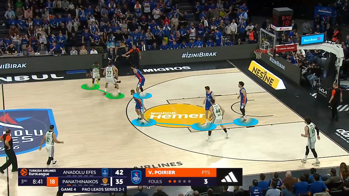 Ο Ναν πηγαίνει προς το καλάθι, έχοντας σοτν γοφό του τον Λάρκιν. Όλη η άμυνα της Εφές είναι προσαρμοσμένη πάνω του, ενώ Σλούκας και Όσμαν είναι ελεύθεροι στην περιφέρεια.