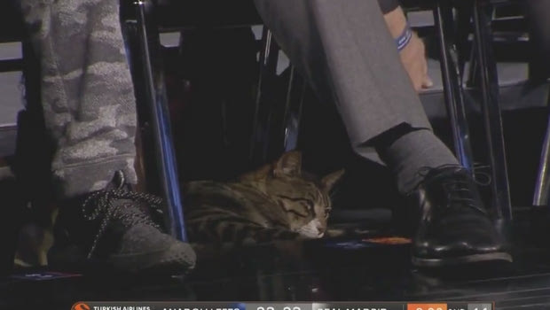Στην αναμέτρηση που άνοιξε το πρόγραμμα της Παρασκευής (Αναντολού Εφές – Ρεάλ Μαδρίτης), εισέβαλε ένας θεατής τελείως διαφορετικός από τους υπόλοιπους. Στις αρχές του δευτέρου δεκαλέπτου, ο τηλεοπτικός φακός της EuroLeague έπιασε μία γάτα να έχει κουλουριαστεί κάτω από τα πόδια ενός θεατή.