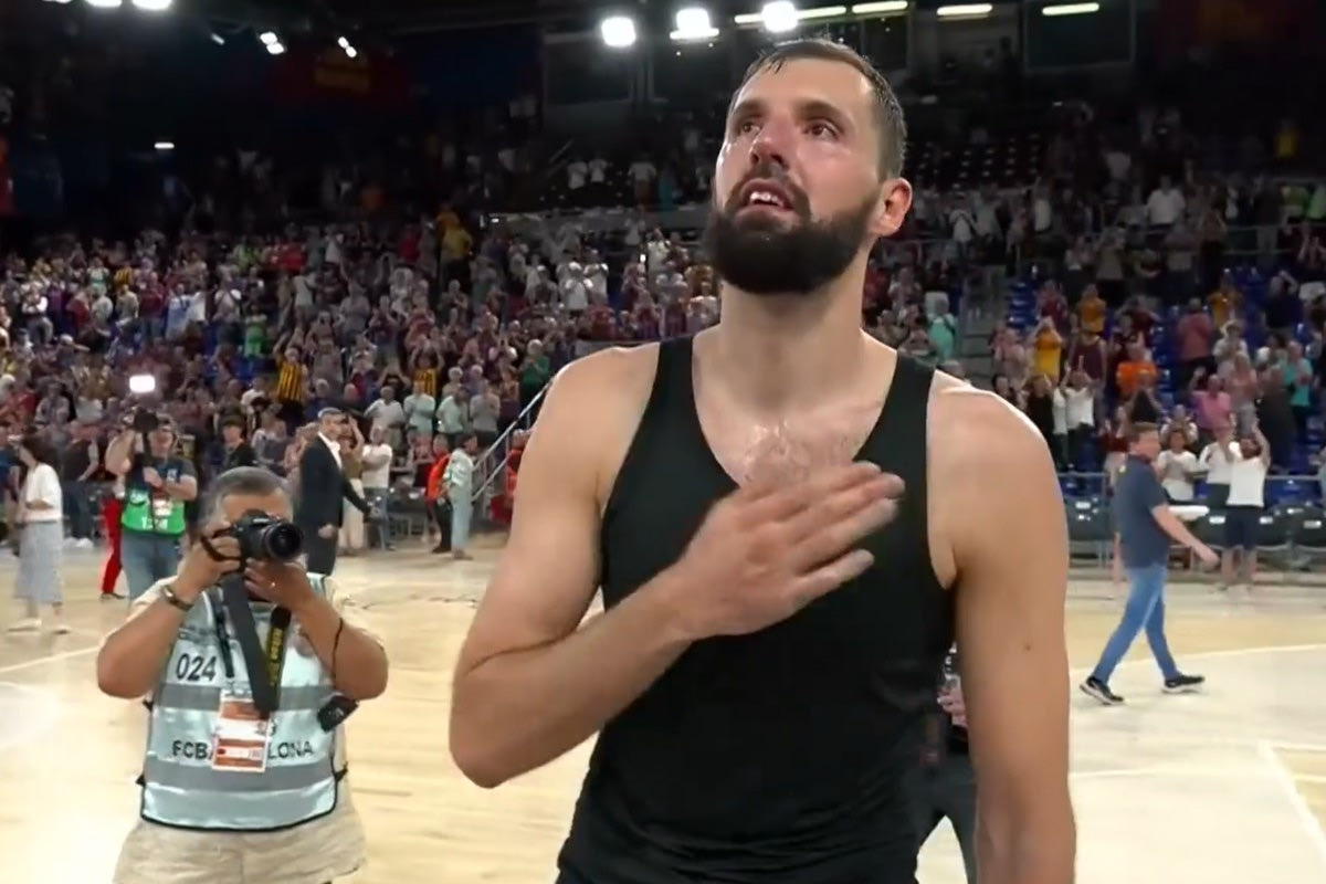 Αυτό που συνέβη το βράδυ της Κυριακής (18/6) στο Παλάου Μπλαουγκράνα, ήταν βγαλμένο από τα όνειρα του Νίκολα Μίροτιτς. Στο ενδεχομένως τελευταίο παιχνίδι του στη Βαρκελώνη (η Μπαρτσελόνα προηγείται 2-0 στους τελικούς της Liga Endesa απέναντι στη Ρεάλ Μαδρίτης και χρειάζεται μία νίκη για το πρωτάθλημα Ισπανίας) ο έμπειρος φόργουορντ δεν χειροκροτήθηκε απλώς, αλλά αποθεώθηκε με ένα σπάνιο standing ovation που τον συγκίνησε.