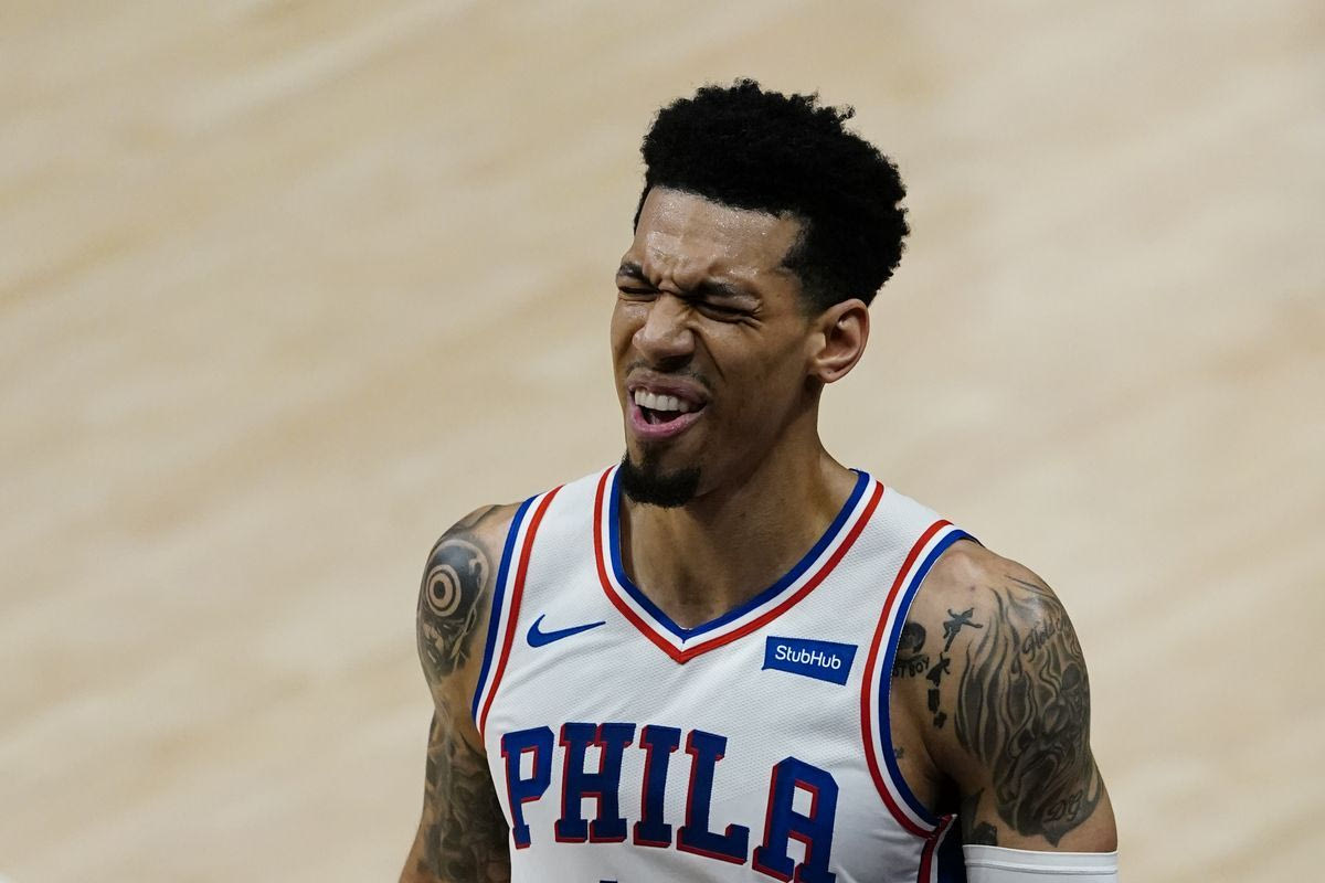 Ο Ντάνι Γκριν των Σίξερς την στιγμή του τραυματισμού του σε αγώνα με τους Χοκς ⓒ 2021 John Bazemore/Associated Press