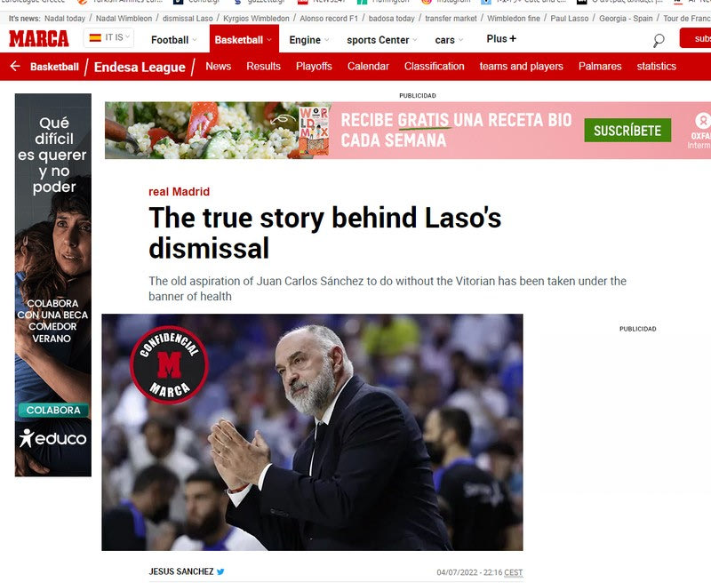 Η εφημερίδα σημειώνει ότι αποκαλύπτονται οι τεταμένες σχέσεις του προπονητή με το μάνατζμεντ της ομάδας και σίγουρα “μια φυσιογνωμία όπως ο Λάσο αξίζει ένα θρυλικό αποχαιρετισμό” και προφανώς όχι αυτό που αποφάσισε η Ρεάλ.