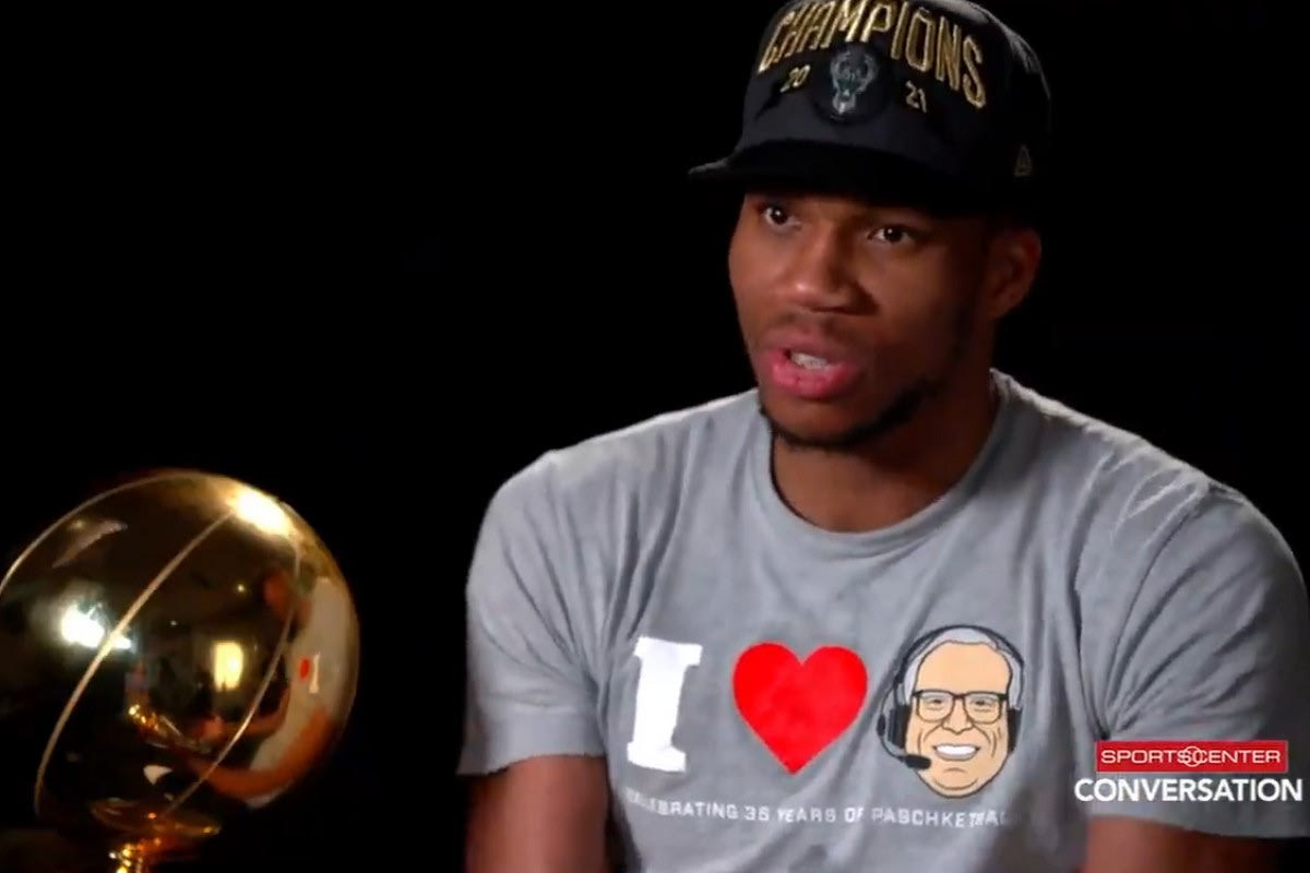 Λίγες στιγμές μετά την κατάκτηση του τίτλου, ο Γιάννης παραχώρησε συνέντευξη στην Μαλίκα Άντριους στο “Sports Center” του ESPN και παραδέχθηκε ότι εκείνο το παιδί που κάποτε ήταν στα Σεπόλια δεν έχει πιστέψει τι έχει καταφέρει, για να προσθέσει ότι πλέον κοιτάζει ήδη την επόμενη σεζόν και πώς θα δουλέψει σκληρά για να αναδειχθεί πρωταθλητής.