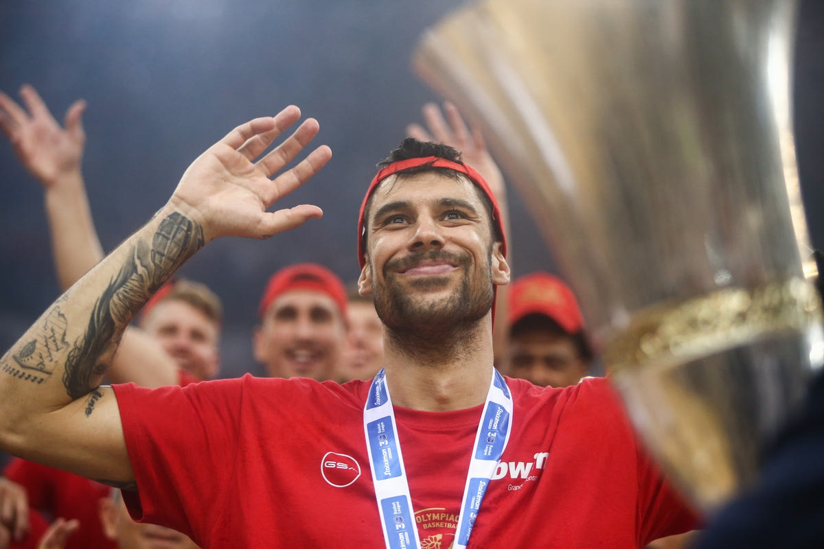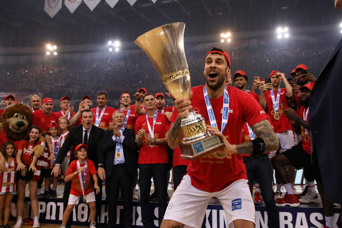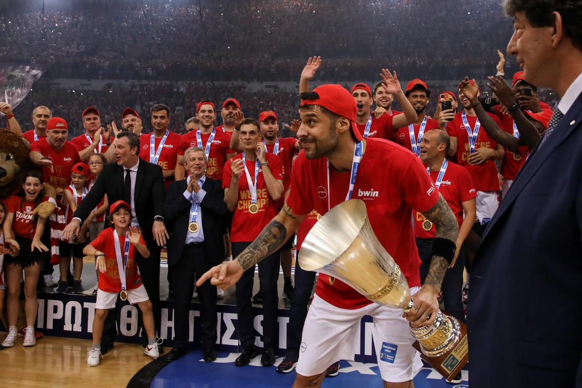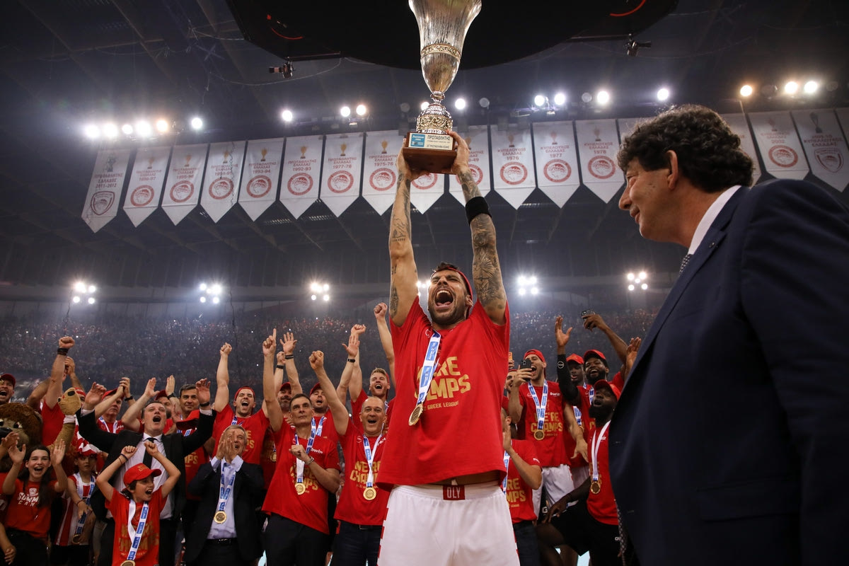 Ο Γιώργος Πρίντεζης ήταν ο απόλυτος πρωταγωνιστής στις μαγικές στιγμές που βίωσε ο Ολυμπιακός με την κατάκτηση του τίτλου και η κορύφωση του ερυθρόλευκου θριάμβου ήρθε τη στιγμή που ο αρχηγός πήρε το τρόπαιο και το σήκωσε στον αέρα.
