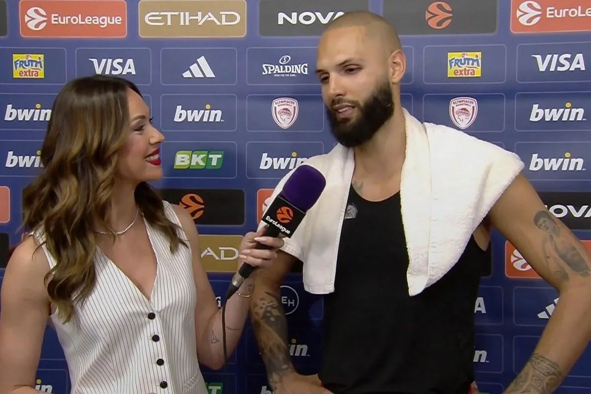 Ο Εβάν Φουρνιέ ήταν εκ των πρωταγωνιστών της υπερηχητικής εμφάνισης των Πειραιωτών και εκτός από το παρκέ έδωσε ρεσιτάλ και στις δηλώσεις του στο flash interview.